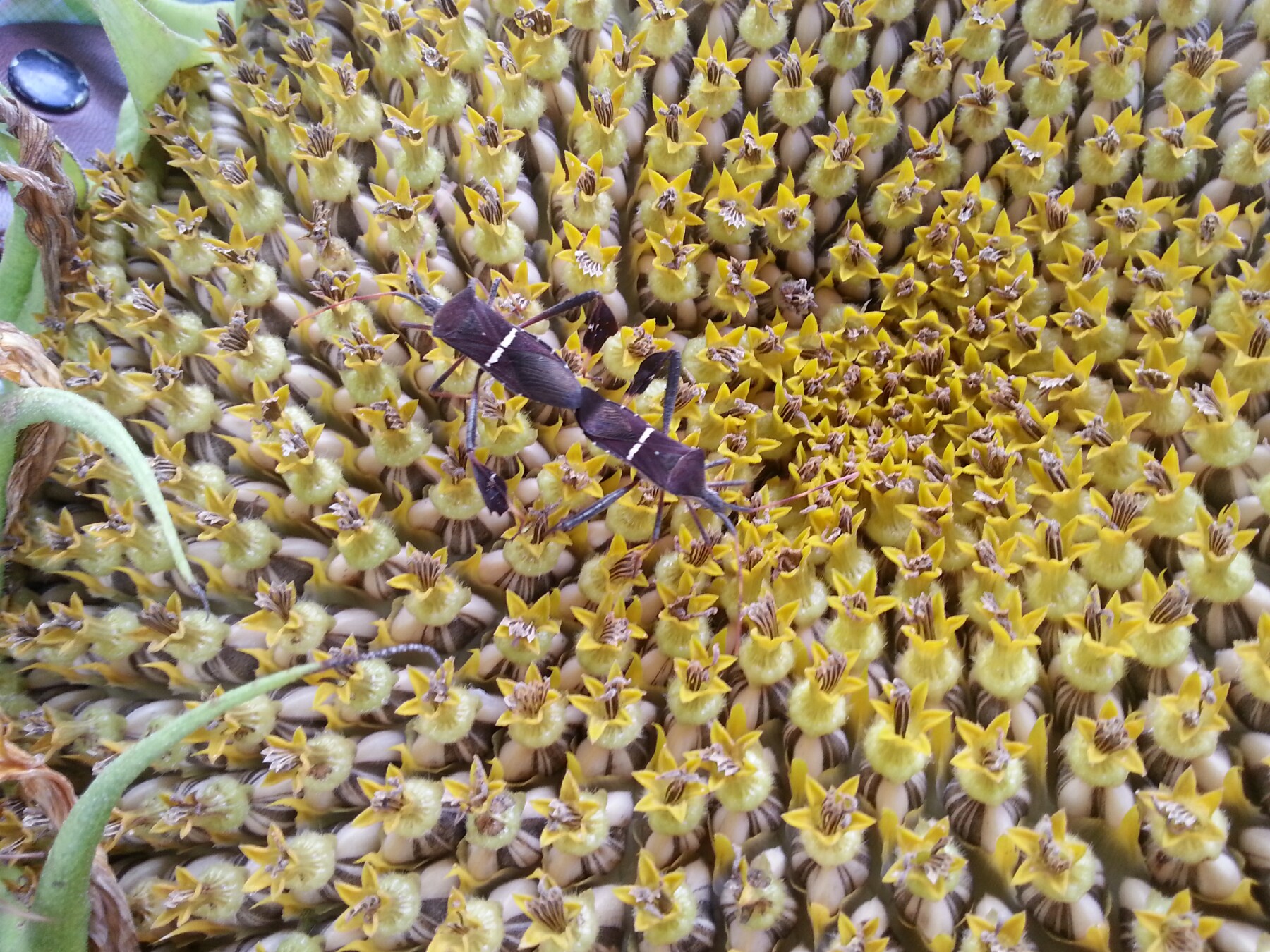 2013 Harvest – sunflower seeds with leaf-footed bugs – 28 July 2013