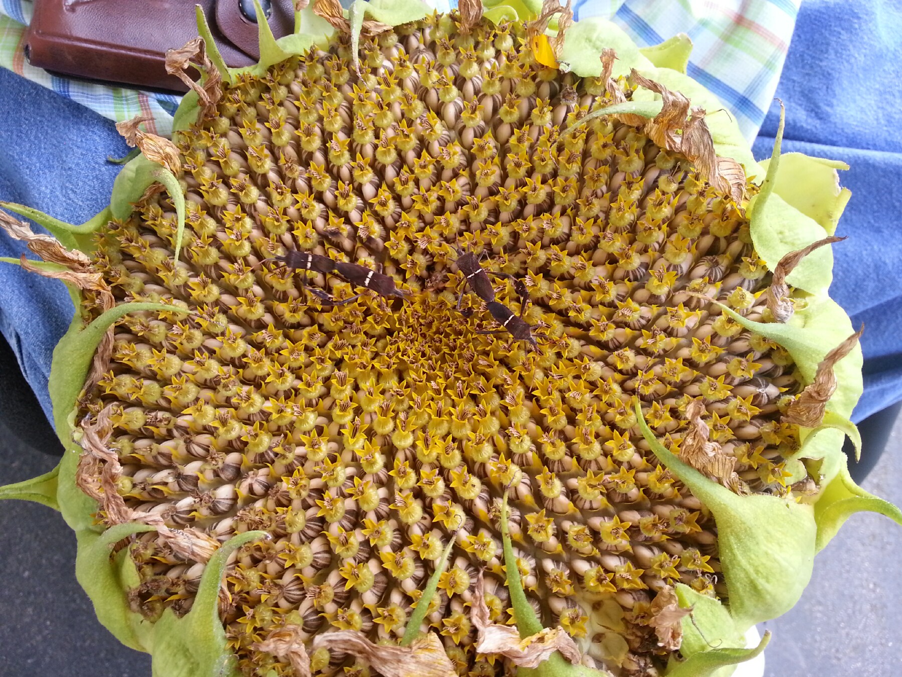 2013 Harvest – sunflower seeds with leaf-footed bugs – 28 July 2013